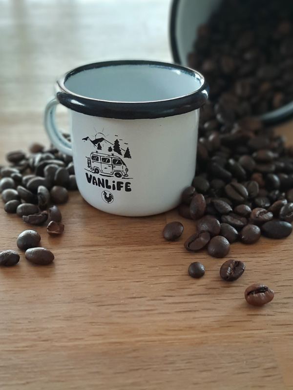 Auf Wunsch kann der eigene Name oder eine persönliche Gravur aufgebracht werden. Die Gravur wird auf unserer Tasse in Form eines SnapPap-Anhängers angebracht. SnapPap ist ein neues Material in Lederoptik auf Papierbasis. Es besteht aus einer Papier-Kunststoff-Mischung (Zellulose und Latex) und ist absolut wasser- und reißfest. Es ist 100% vegan. Sozusagen Leder auf Papierbasis. Preis: 3.00 € (nur geegnet für Emaille Tasse, nicht für Espresso Tasse) |